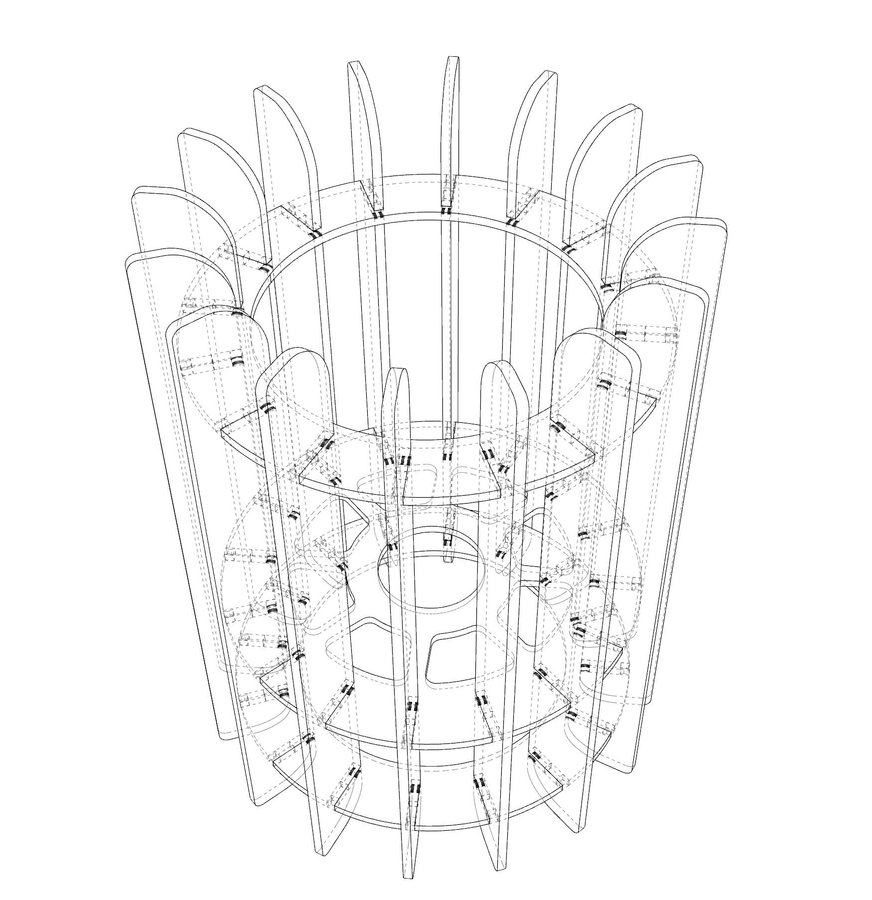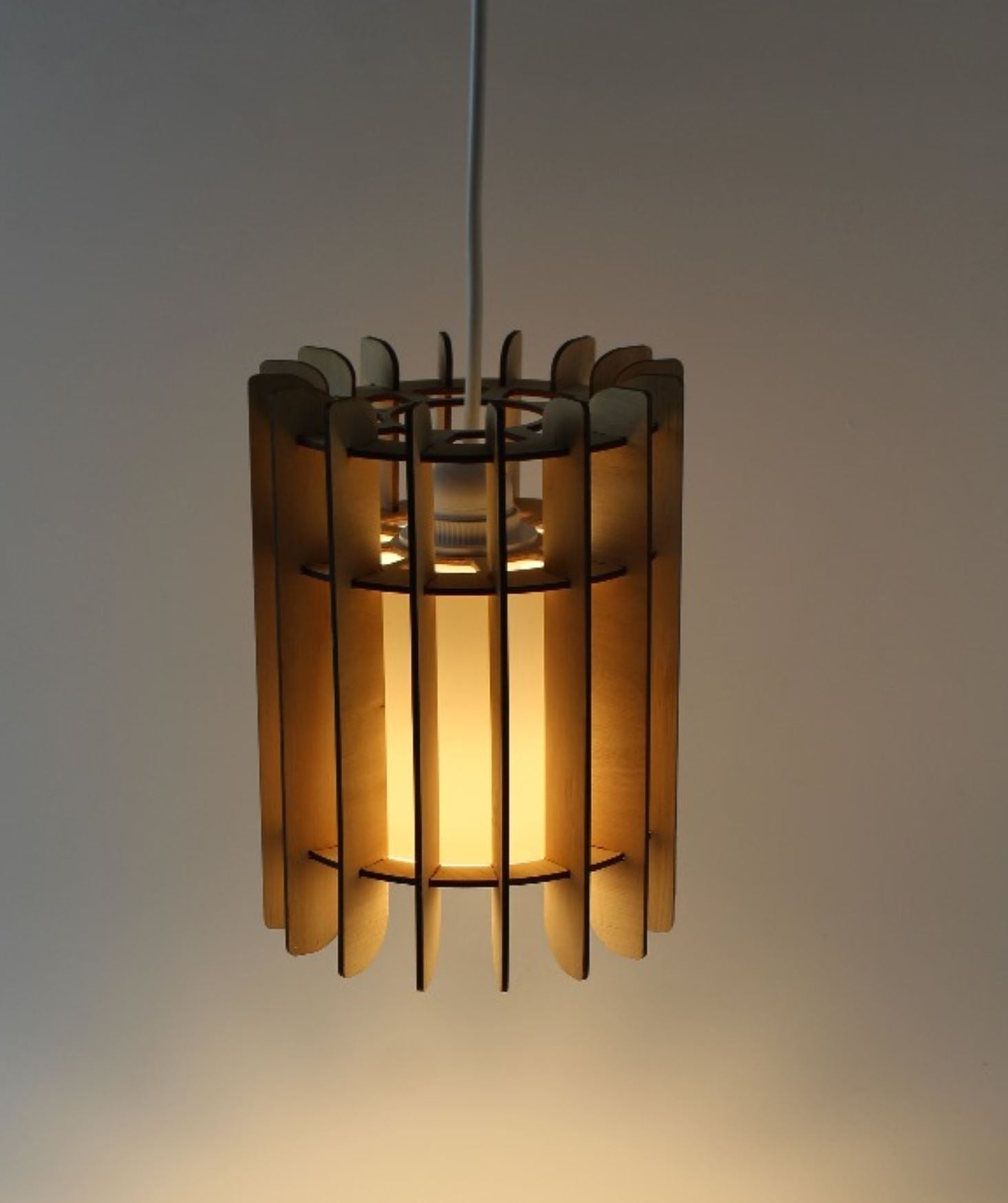 La Lámpara Tubito destaca por su diseño minimalista y versátil, fabricada en madera terciada sostenible. Su estructura cilíndrica con láminas verticales rodea un difusor central blanco, lo que permite una iluminación cálida, uniforme y acogedora.